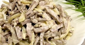 Салаты Салат «Елена» — это сытное блюдо из говяжьего сердца и маринованного лука. История салатов ...