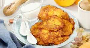 Описание приготовления: Оладьи из тыквы — идеальный вариант для сытного и полезного завтрака. Они получается ...