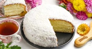 Готовый бисквит аккуратно достаньте из формы, удалив боковой бортик, на решетке до полного остывания. Если бисквит будете использовать для приготовления торта, разрежьте его на 2-3 части.