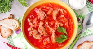 Описание приготовления: Свекла — главный герой этого блюда, которая придает борщу характерный цвет и невероятно полезные свойства. В сочетании с болгарским перцем, картофелем и морковью, так же нежной свининой, станет не только сытным, но и полезным блюдом для всей семьи. Подают его в горячем виде, со сметаной и свежей зеленью. И не забудьте подать к нему черный хлеб, который идеально ...
