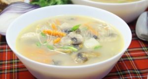 Наваристый сливочный суп с шампиньонами и сыром, хороший обед для всей семьи. Ингредиенты: Вода — 1,5 л Шампиньоны свежие — 200 г Сыр — 50 г Картофель — 2 шт Морковь — 1 шт Луковица — 1 шт Растительное масло — 2 ст. л. Соль — по вкусу Приготовление: Грибы, лук и морковь очистить. На сковороде обжарить с растительным маслом ...