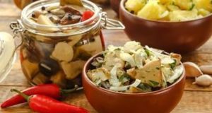 Ингредиенты (на 1 порцию): Сахар 4 столовые ложки Соль, перец черный молотый по вкусу Лавровый лист 2 штуки Перец чили 1 штука Винный уксус 6 столовых ложек Грибы подберезовики 0.5 килограмма Белые грибы 1 килограмм Зубчик чеснока 5 штук Пучок зелени для засолки (укроп, листья хрена) 1 штука Грибной сезон радует нас не слишком долго, и хочется подольше оттянуть то ...