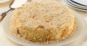Ингредиенты (на 10 порций): Мука 1 столовая ложка Сахар 1 стакан Коньяк 50 миллилитров Ванильный сахар 2 чайные ложки Миндаль 50 граммов Желток 4 штуки Сливочное масло «Простоквашино» жирностью 82% 200 граммов Сливки «Простоквашино» 10% 500 миллилитров Бездрожжевое слоеное тесто 500 граммов Если вы любите «мокрые» тортики, приготовьте для «Наполеона» сметанный слоеный крем, для этого 400 г сметаны жирностью 20% ...