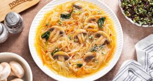 Описание приготовления: Ниже я расскажу подробнее, как приготовить суп с фунчозой и шампиньонами. Шпинат можно использовать как свежий, так и заморозку, а также заменить его на другую зелень. Например, укроп, кинзу или петрушку. Из специй можно добавить острый перец хлопьями. Рецепт отлично подойдет на время поста или для тех, кто не употребляет животные продукты. Назначение: На обед Основной ингредиент: Грибы ...