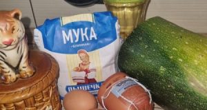 Рецепт: Оладьи из кабачков с чесноком — На блинной муке с колбасой
