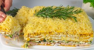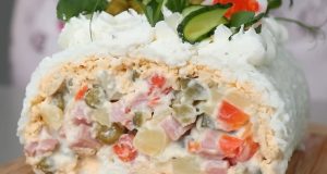 Читать далее »Закусочный торт-салат «Снежные слои». Идеальное сочетание ингредиентов на праздничный стол
