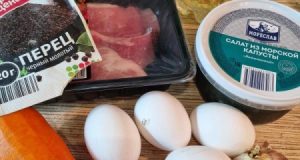 Ингредиенты: свинина — 400 г;морская капуста — 200 г;морковь свежая — 1 шт;лук репчатый — 2 шт.;яйца куриные — 4 шт.;молоко — 12 ст.л;перец черный молотый — по вкусу;чеснок — 1 зубчик;масло растительное — 1 ст.л.;соль — по вкусу Способ приготовления: С салатом Японский я знакома уже достаточно давно. Не могу сказать точно — почему именно он так называется, просто, ...