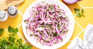Описание приготовления: Чтобы красочнее и ароматнее подать шашлык, стейки, жаркое и прочие мясные, куриные блюда, заранее замаринуйте лук. Выбирайте корнеплоды красного цвета — нарезка из них смотрится ярче, выигрышнее и аппетитнее. По желанию можно заливать кипятком или холодной водой — оба способа хороши. Добавляйте свежую зелень, зерновую горчицу и т.д. Основной ингредиент: Овощи / Лук / Красный лук Блюдо: Закуски ...