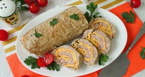 Сверните края, а затем скатайте рулетиком, получая аппетитный голубец. Таким образом скрутите и остальные заготовки.