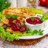 На дно горшочка для запекания выложите половину мяса с овощами.