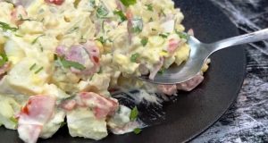 После добавьте красный перец "Кочукару" и еще раз хорошо перемешайте, чтобы порошок весь смешался с заправкой.