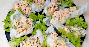 Для заправки смешайте рисовую муку с водой, на среднем огне доведите до кипения. Добавьте сахар. Проварите пару минут, пока жидкость не начнет густеть. После снимите с плиты и дайте остыть.