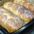 Кладем рулеты на противень на расстоянии друг от друга. Смазываем рулеты смесью желтка и молока, делаем неглубокие надрезы по всей длине.
