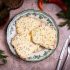Нарезаем маленьким кубиком лук, добавляем к нему щепотку соли и уксус, перемешиваем. Оставляем лук мариноваться на 10 минут.