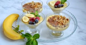 Разлейте смесь по формочкам. Я использую обычную небольшую пиалу. Уберите в холодильник на 1-2 часа, чтобы десерт застыл.