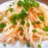 Дополнить салат стоит зеленью — зеленым луком и укропом. Получается быстрый вкусный салат из минимума продуктов.