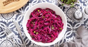 Теперь салат готов к подаче, он выглядит необычайно привлекательным!