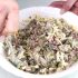 Нарезаем лук четвертинками, шинкуем кинзу. Смешиваем в отдельной таре грецкие орехи, нарезаем туда чеснок тонкими пластинками.