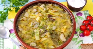 Готовый суп разложите по порционным тарелкам, в которые мелко порубите любимую свежую зелень.