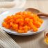 С каждого кусочка срежьте аккуратно жесткую кожицу, а также мягкую волокнистую часть сердцевины, так чтобы осталась однородная плотная тыквенная мякоть. Нарежьте тыкву кусочками, желаемой величины.